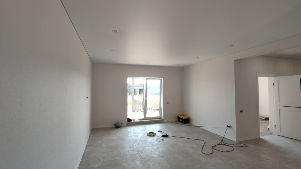 Потолок: высота 2,6 м., натяжной по всему дому с освещением.