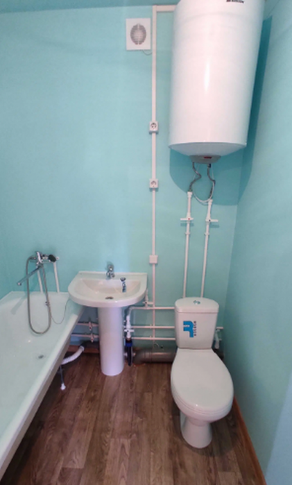 Отопление электроконвекторы, подогрев полов электрическими матами под ламинат. Произведена разводка электричества по всему дому, установлены счетчики и автоматы на электроэнергию, входная дверь Термаль Дверной континент" с терморазрывом для коттеджей, окна 1200х1200, профиль Exprof ; 70 мм - 5 камер, в санузле ванна, раковина, унитаз, бойлер на 80 л для нагрева воды.