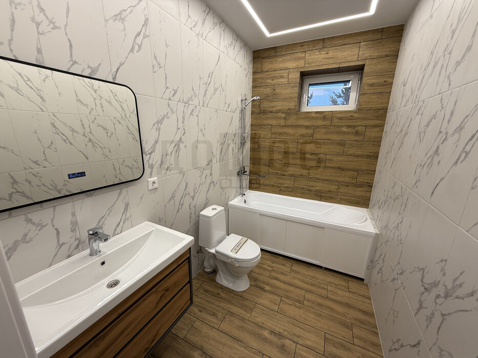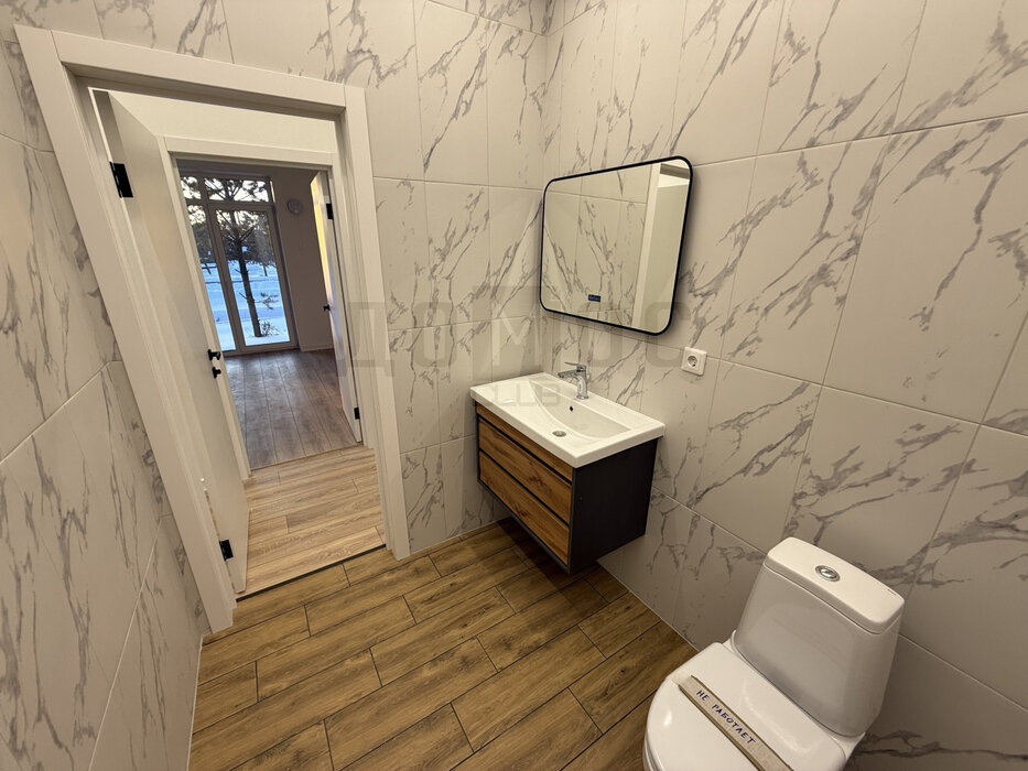 В доме 120 м² теплого контура: теплые водяные полы: в кухне-гостиной, зимнем саду, коридоре и с/узлах. По всему дому установлены батареи, как запасной вариант. В натяжные потолки уже вмонтированы карнизы для штор, а в комнатах и зимнем саду установлены светильники и бра. Кондиционер в подарок!