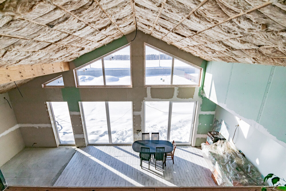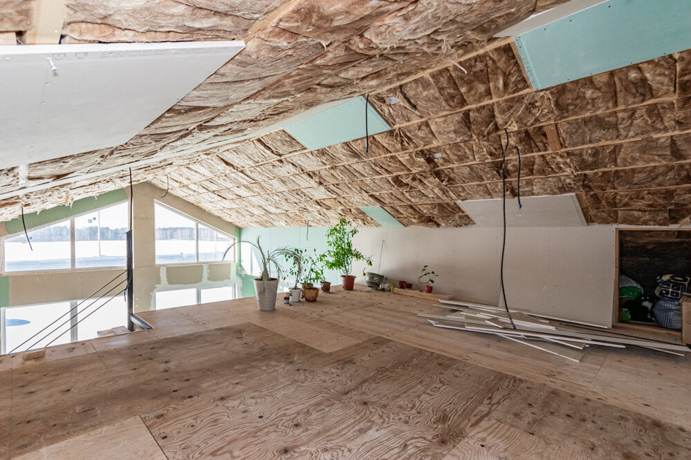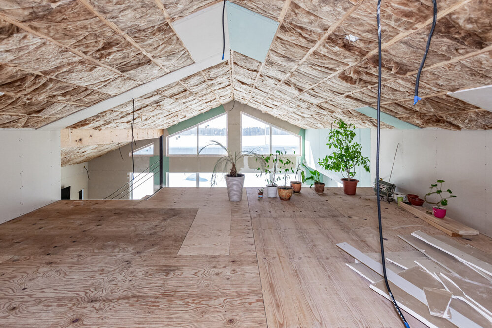 - Крыша - стропильная система, строганная доска. Отделка - профлист, Целлюлозный утеплитель, 200 мм. Цвет - серый графит.