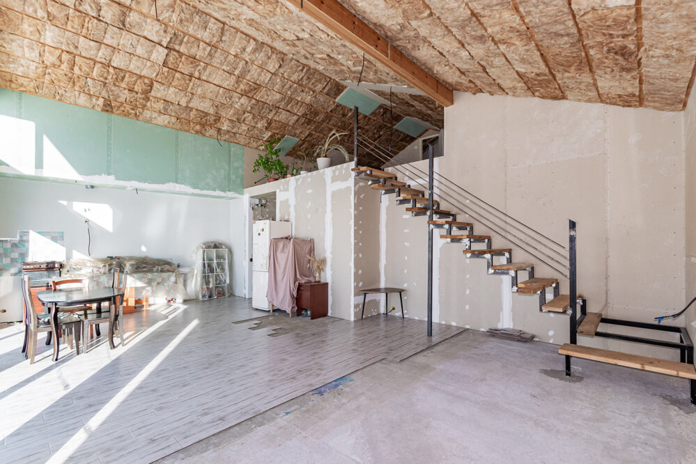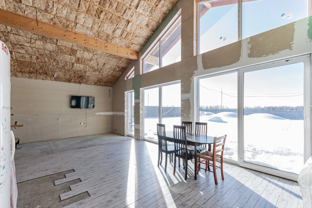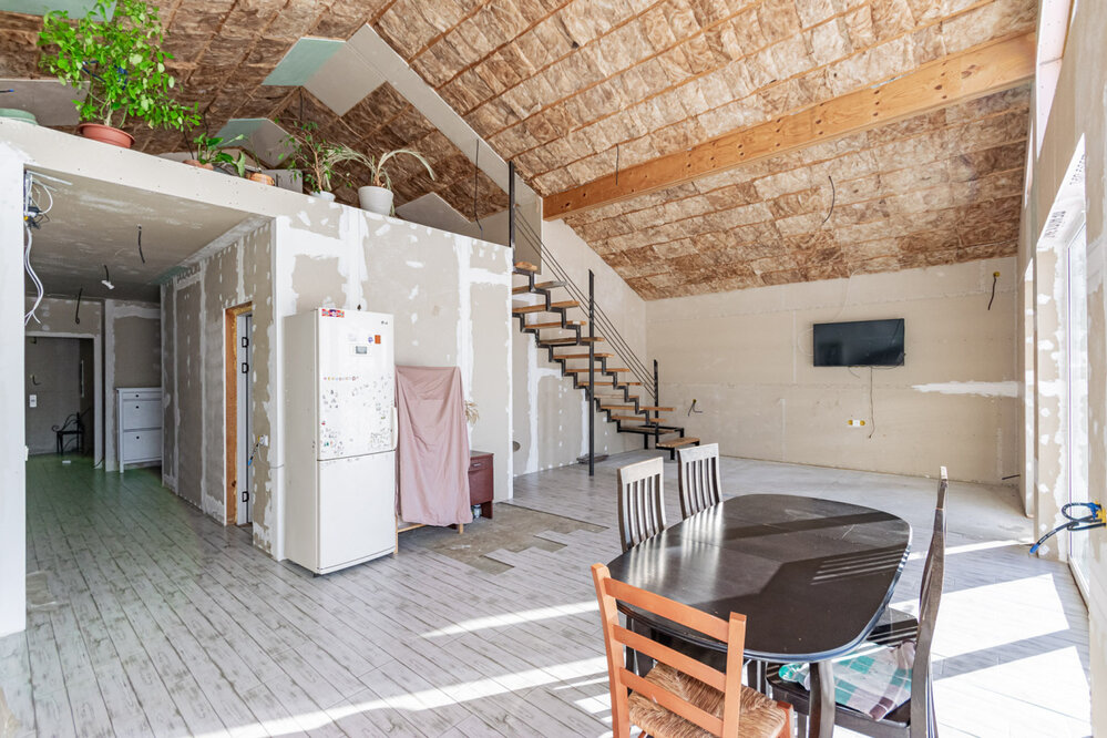 - Дом укомплектован мебелью и бытовой техникой: встроенная кухня встроенный шкаф, ванная с раковиной и унитазом, спальные места на первом и втором этаже, диван, обеденный стол с стульями; варочная поверхность, вытяжка, бойлер, стиральная машина.