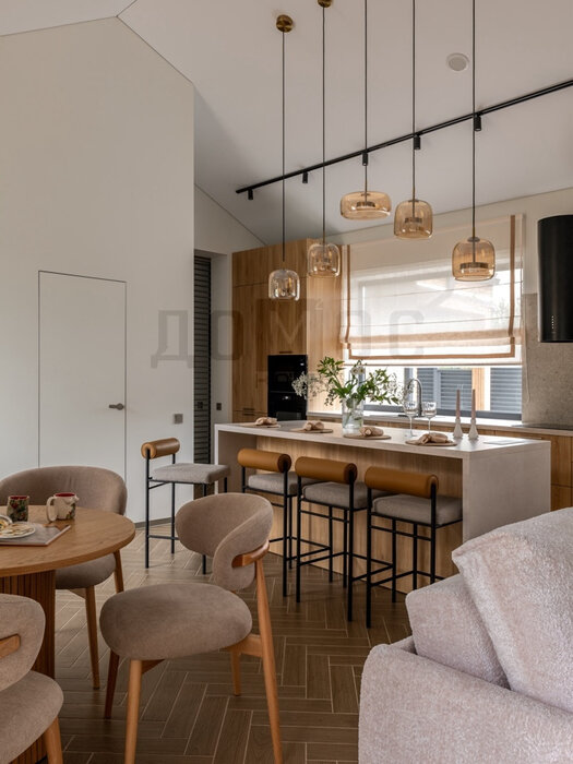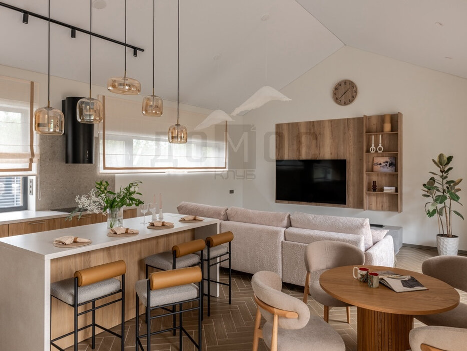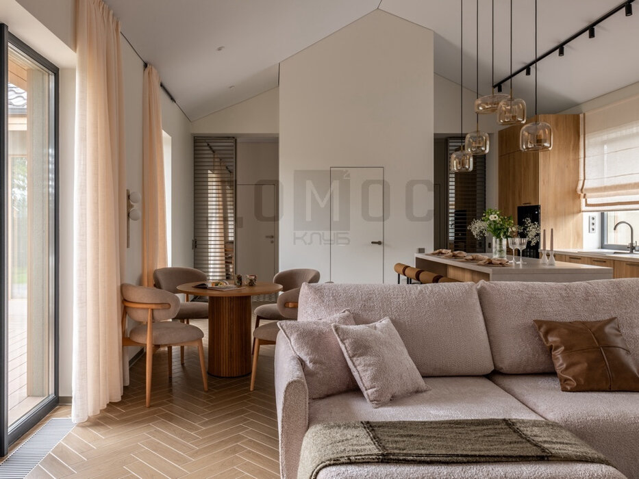 - доминантой дома является зал с панорамным остеклением (5,8м) и уютным камином – а роскошная лестница соберет на себе все взгляды и внимание!- отдельная кухонная зона с выходом на террасу