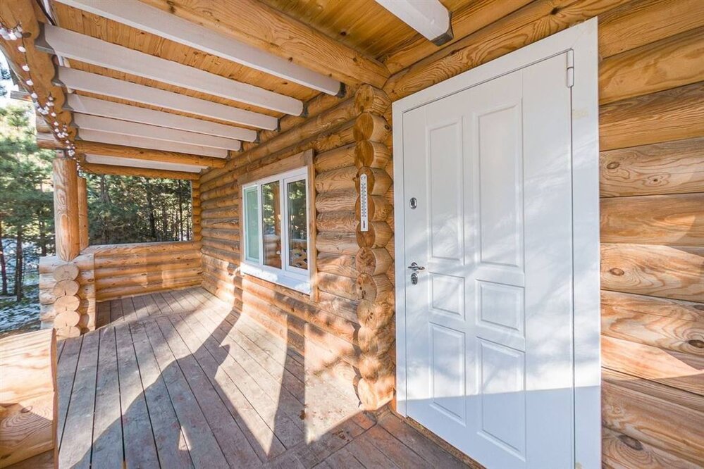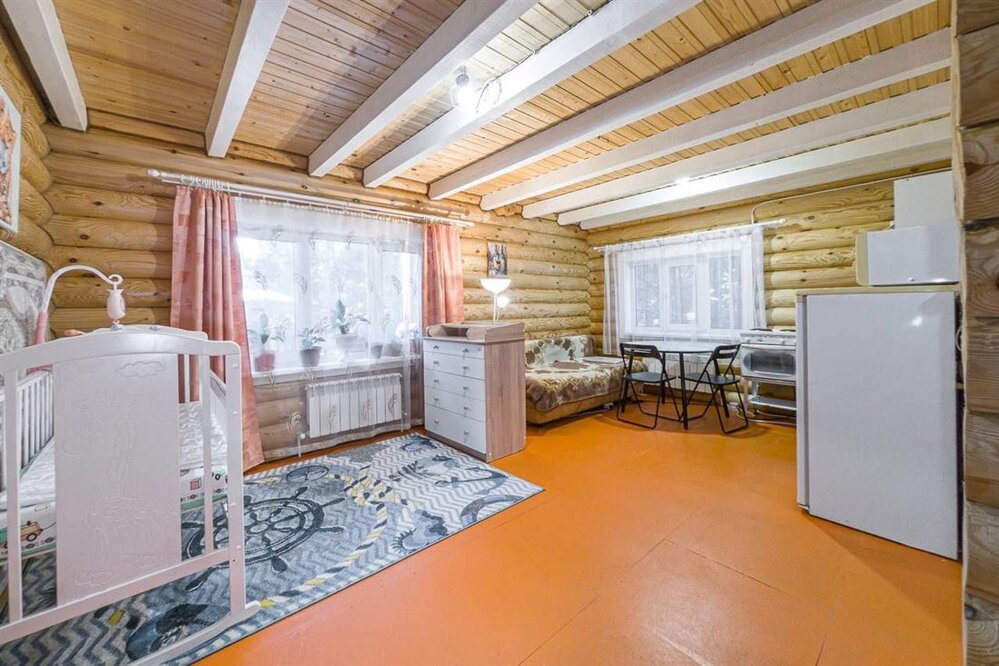 Агентство Дом Недвижимости продает двухэтажный дом из оцилиндрованного бревна. На первом этаже: гостиная-кухня, коридор, совмещённый санузел, техническое помещение, где находится котёл отопления и водонагреватель 10 литров. Вход в дом с большой террасы. На втором этаже: спальня с отдельной гардеробной (есть возможность из одной большой комнаты сделать две). Из спальни выход на балкон, с которого открывается прекрасный вид на участок.