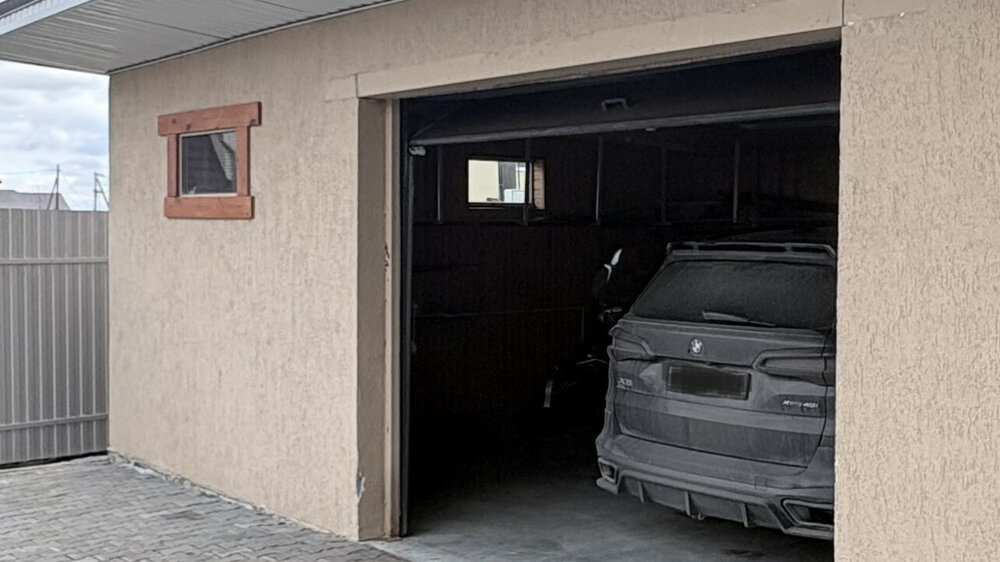 Фасад, оштукатуренный по сетке в два слоя, выглядит элегантно и современно. Земельный участок чист от построек.