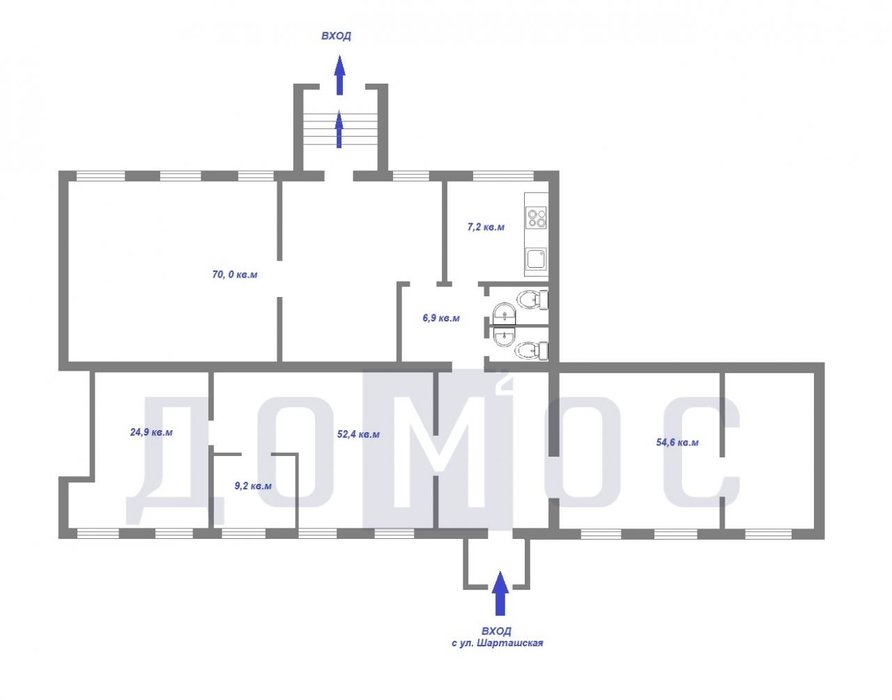 - два отдельных собственных входа с улицы и двора.