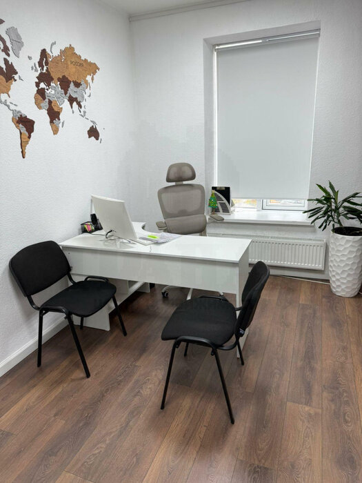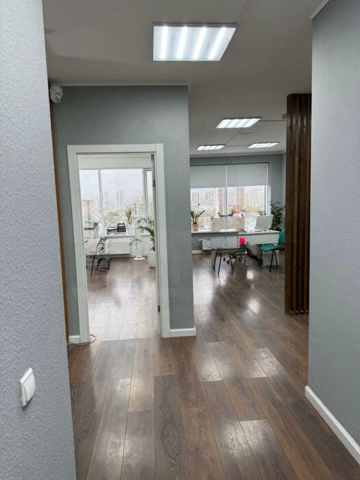 В Офисе сделан хороший ремонт: пол - ламинат, стены - обои под покраску; установлен теплый пол, установлен кондиционер. Высота потолков 3 метра; - мощность 10 кВт.