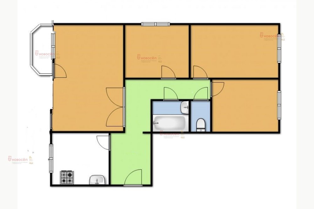 Общее количество комнат в квартире:4