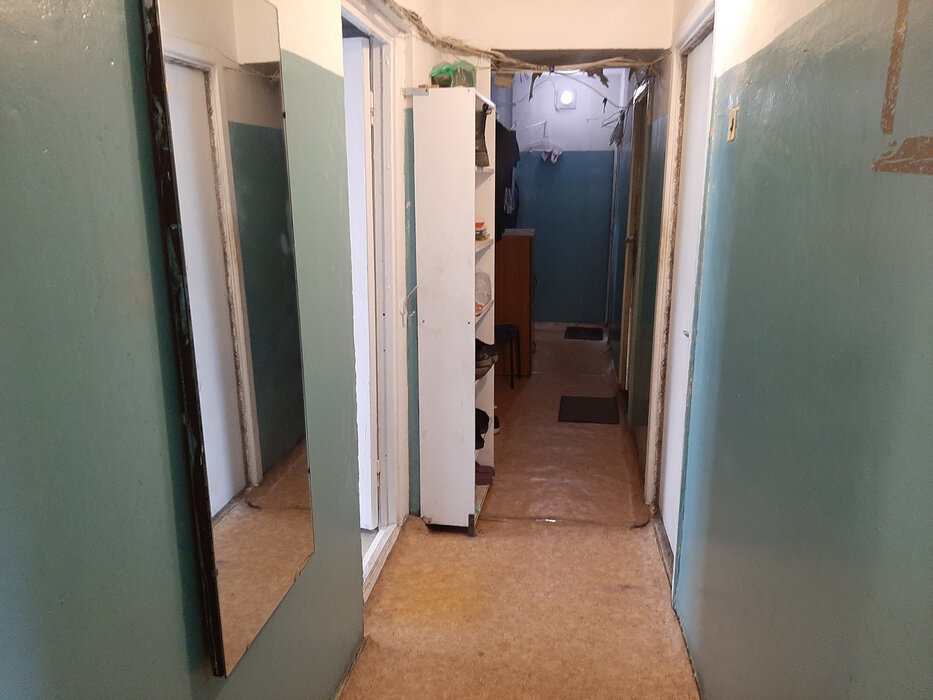 Объект № 194042. Продам комнату коридорного типа. Разделена на 3 части: спальная зона (расположена кровать с матрасом, тумба под телевизор, шкаф-купе с зеркальной дверью), рабочая зона (компьютерный стол) и небольшая прихожая (со шкафом).