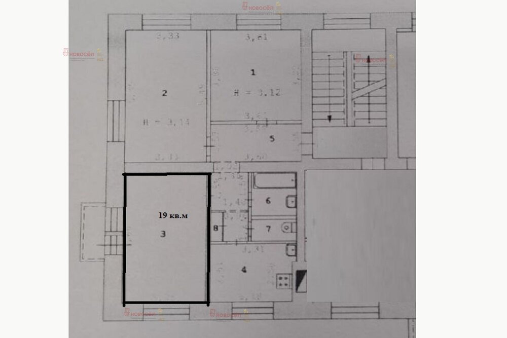 Площадь комнаты:19 м2