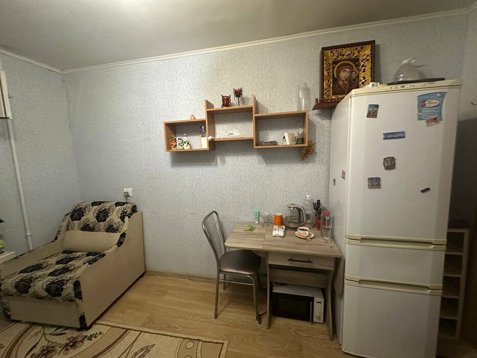 Продам комнату 17,4 кв.м. на 7/9 этаже панельного дома по ул. Студенческой, в районе УРФУ (УПИ). Комната удобной, квадратной формы, с отличным, свежим ремонтом. Окно выходит во двор. Окно пластик, на полу линолеум, на стенах красивые обои: все в спокойном, бежевом цвете. В комнате имеется: один встроенный шкаф под одежду, два встроенных шкафа с полками; новый холодильник, удобная кровать, стол, стулья, тумбочка, в ванной комнате – стиральная машина. Балкон выходит из кухни; имеется 2 туалета, 1 душевая кабина, 2 мойки, на кухне эл. плита; один пассажирский лифт.