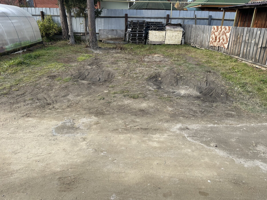 участок 13 соток, правильной формы, с перепадом в два уровня, выровнен, сделана планировка, отсыпан скальным грунтом в зоне парковки, в остальном отсыпан черноземом под газон. Фундамент