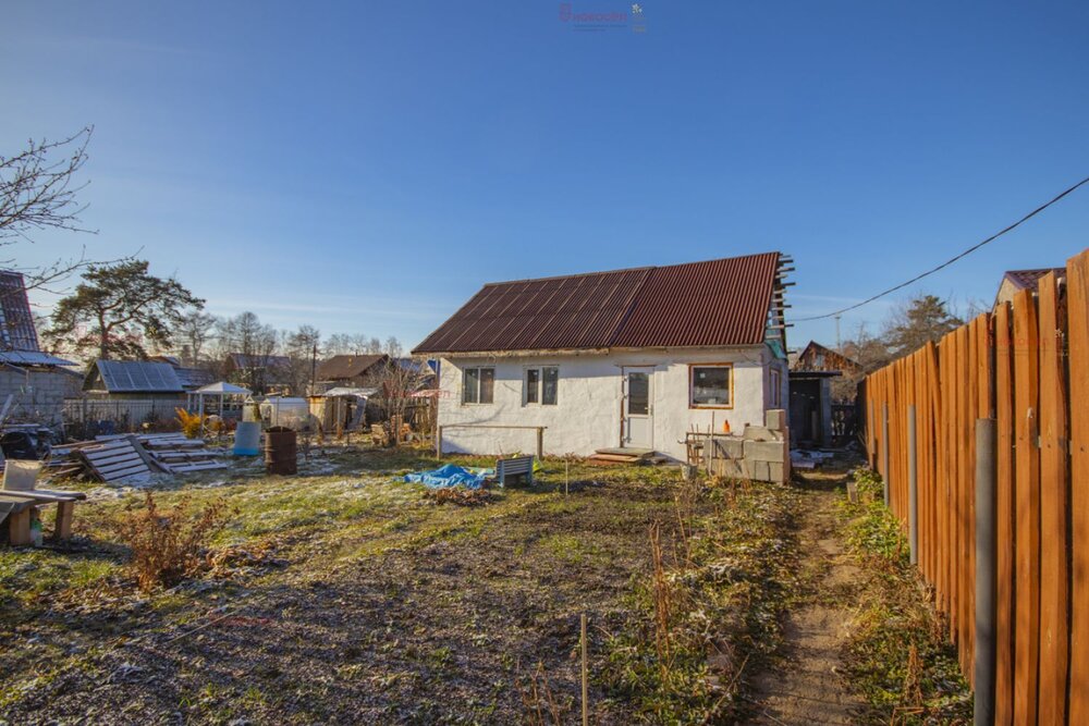 Продам садовый участок с домом в черте города Екатеринбурга, в микрорайоне Уралмаш. Участок правильной прямоугольной формы, площадью 566 кв.м, назначение - земли населенных пунктов, разрешенное использование - садоводство. На участке - дом, баня, две теплицы, небольшой сарайчик, отсыпанное щебнем парковочное место. Участок обработан, ухожен, почва рыхлая, плодородная, многолетние плодово-ягодные насаждения и множество цветов. Проведен летний водопровод, трубы разведены по всему участку, практически, подведены к каждой грядке. Дом небольшой, в хорошем состоянии: крепкий, из бревна, обшит деревом, статус - жилой, что позволяет оформить адрес, зарегистрироваться и проживать круглогодично. Дом разделен на кухню и две комнаты. отопление _ печное, хорошая кирпичная печь. Есть остекленная веранда и небольшая ямка для хранения заготовок. Баня из бревна, действующая, теплая, металлическая печь с баком для воды топится из предбанника. Две просторные теплицы из стекла и поликарбоната.В саду есть пожарный водоем - симпатичный пруд, где можно купаться в жаркую погоду и обще садовая скважина с питьевой водой.Участок расположен в черте города, 15 минут пешком до остановок общественного транспорта и магазинов, банков и прочей инфраструктуры микрорайона Уралмаш.Юридически чистый объект: собственник один, совершеннолетний, обременений и задолженностей нет. Паспорт проверен.