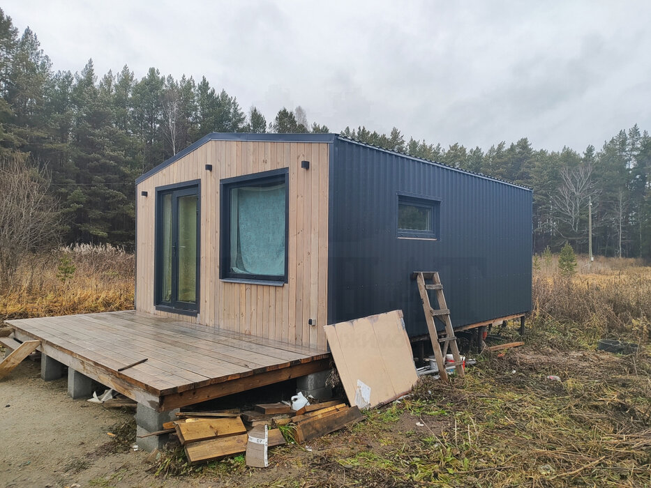 Дом 2022 года постройки, строился в тёплое время года. Фундамент: свайно-ленточный + монолитная плита. Материал стен: газобетонный блок + базальтовый утеплитель + декоративная штукатурка + армопояс; гидроизоляция и пароизоляция по технологии. Крыша: четырёхскатная из металлочерепица, кровельные свесы подшиты софитами, сразу выполнена водосточная система.