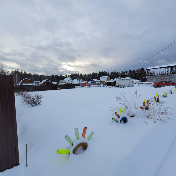 Участок правильной прямоугольной формы. Подъезд к участку отсыпан щебенкой, сделана отмостка по периметру дома - фундамент защищен от воздействия влаги. Участок дополнительно отсыпан грунтом, сделано современное ограждение, откатные ворота.