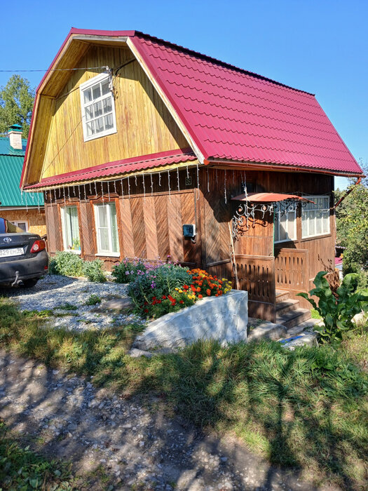 На участке несколько строений: дом 2х этажный, беседка с летней кухней, терраса из лиственницы на которой расположена кедровая баня, теплица и парник(на ленточном фундаменте), парковка на 2ва автомобиля, навес для моторной техники.