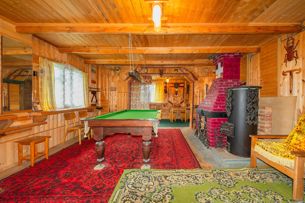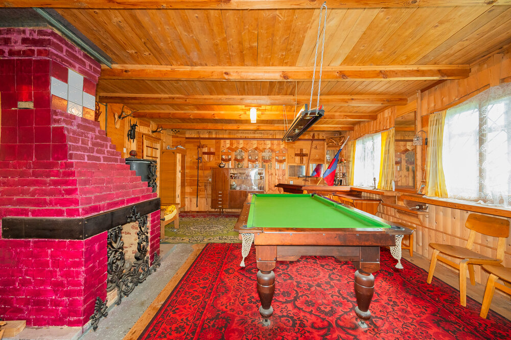 На первом этаже кухня, большая комната для отдыха с камином и бильярдом. На втором – три спальни, кабинет-библиотека.