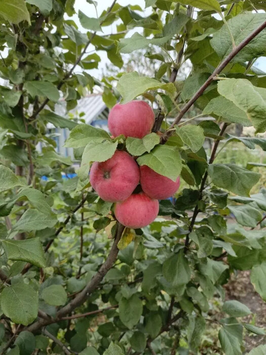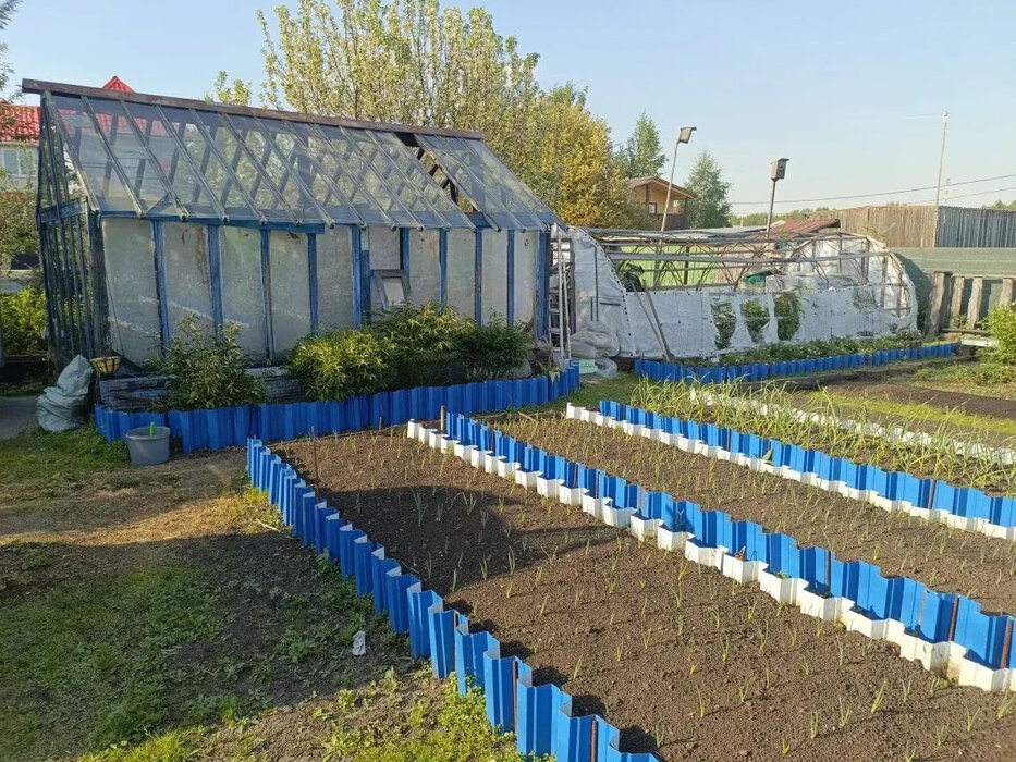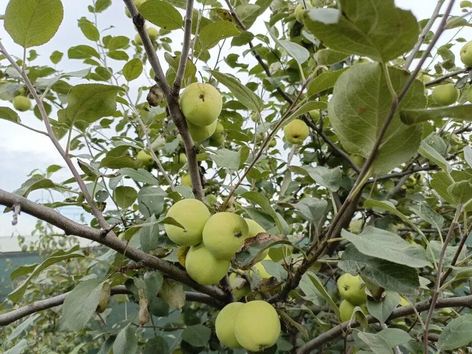 - По периметру участка имеeтcя многo плодовo-ягодных кустарников и деревьев: яблоня, облепиха, вишня, слива, малина, смородина, крыжовник; по центру растет клубника;
